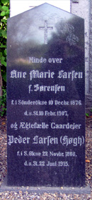Ane Marie Sørensen, gift med gaardmand Peder Larsen SØ, datter af gaardmand Niels Christian Sørensen Høgh og hustru Ane Johanne Madsen